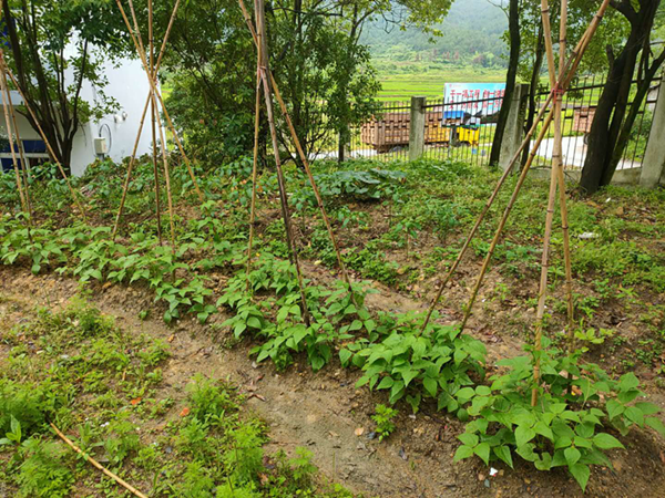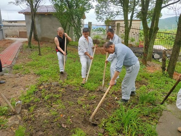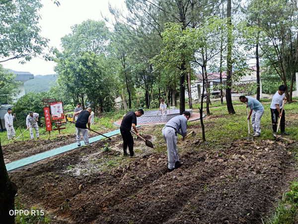 今天的任務十分“艱巨”,要將生活區(qū)后院改造成菜園。大家熱情高漲,自發(fā)地分成多個小組墾荒,前面拿鐵鍬的剛翻完地,后面緊接用鋤頭鎬出田壟,現(xiàn)場一派熱火朝天的景象,忙而不亂,秩序井然。