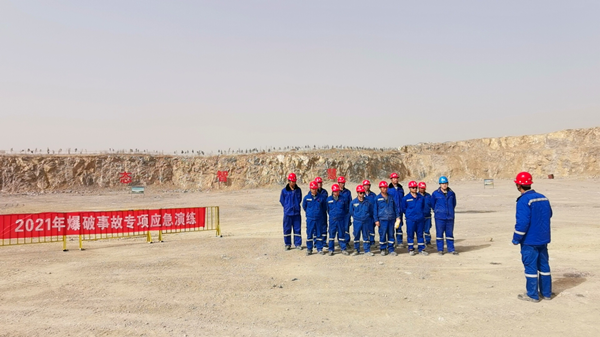 3月16日,泗水分公司為檢驗員工在礦山開采爆破作業(yè)過程中的組織程序執(zhí)行情況,以及應(yīng)變突變事故的處理能力開展了“2021年爆破事故專項應(yīng)急演練――爆破飛石傷人演練”。