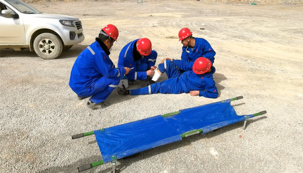 本次演練由泗水分公司經(jīng)理劉進德為總指揮,指揮領(lǐng)導(dǎo)應(yīng)急小組開展此次爆破演練。演練主要模擬爆破作業(yè)過程中因炮孔充填深度不夠,導(dǎo)致爆破飛石砸傷人員的場景。演練開始后,應(yīng)急小組立即啟動專項應(yīng)急預(yù)案,迅速組織警戒治安組、醫(yī)療救護組等各小組按照分工與職責(zé),趕赴現(xiàn)場展開救援,緊急處理傷員傷勢并送醫(yī)救治,圓滿完成各項演練任務(wù)。