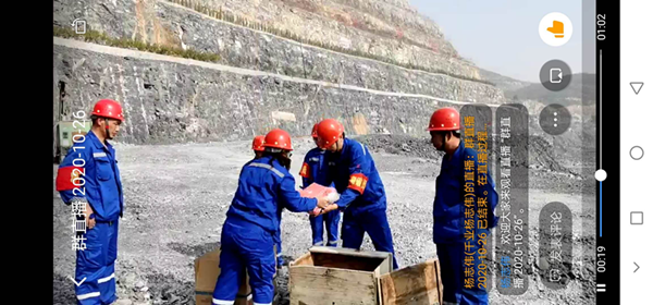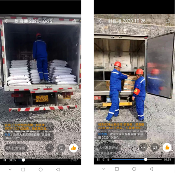 當運輸巖石粉狀大包和電子雷管的車到達作業(yè)地點后,對數量進行清點,卸車。直播開始。