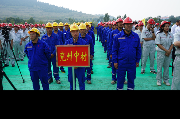 為確保開工典禮的順利進(jìn)行,兗州中材建設(shè)有限公司平陰分公司與平陰山水水泥有限公司積極籌劃,共組織員工50余人、礦用自卸車20臺(tái)、挖掘機(jī)4臺(tái)、灑水車3臺(tái)、裝載機(jī)1臺(tái)、推土機(jī)1臺(tái)、壓路機(jī)1臺(tái)參與此次活動(dòng)。