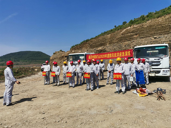 此次演練的模擬場(chǎng)景是,天下暴雨,中部山頭山洪順?biāo)蓝?,匯于東采區(qū)與南采區(qū)交匯處,急流入東、南凹陷采場(chǎng),造成東、南105平臺(tái)水淹的危險(xiǎn),威脅采裝運(yùn)輸設(shè)備的安全和人身安全。