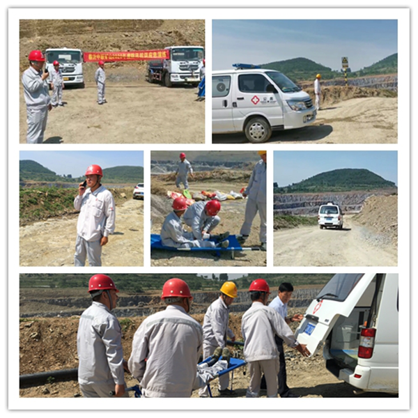 演練正式開(kāi)始后,在總指揮的統(tǒng)一管理、協(xié)調(diào)指揮下,各職能小組根據(jù)各自的職責(zé)分工,有條不紊的開(kāi)展應(yīng)急搶險(xiǎn)工作。物資保障組全力提供救援物資;通信聯(lián)絡(luò)組迅速聯(lián)系醫(yī)療救護(hù)單位、報(bào)告上級(jí)部門(mén);醫(yī)療救護(hù)組做好醫(yī)療救護(hù)準(zhǔn)備,一旦有人員受傷,根據(jù)傷情進(jìn)行救治;疏散警戒組負(fù)責(zé)坑下車(chē)輛及設(shè)備疏散撤離及路口警戒;應(yīng)急救援組及時(shí)疏通水道,向防洪堤壩外疏通, 啟動(dòng)排水設(shè)備,排出采坑積水,運(yùn)輸沙土,裝沙袋筑堤,防止洪水流入采區(qū)。