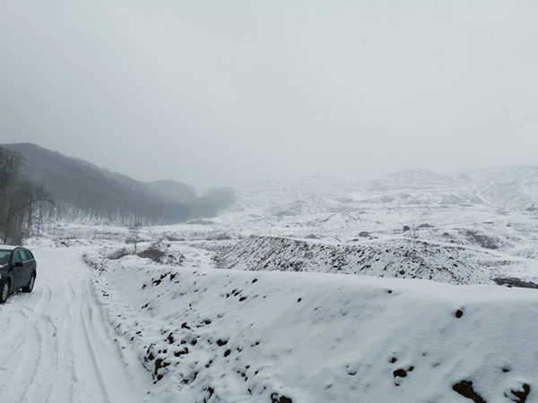 由于工期緊張,雖然積雪未融,在及時清掃的同時,做好車輛防滑及人員的防凍的保護(hù)措施并由原來的一班現(xiàn)已調(diào)整為兩班,并且增加了外協(xié)設(shè)備。