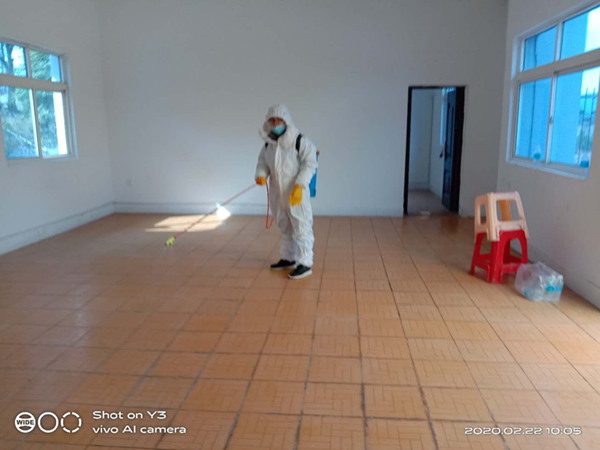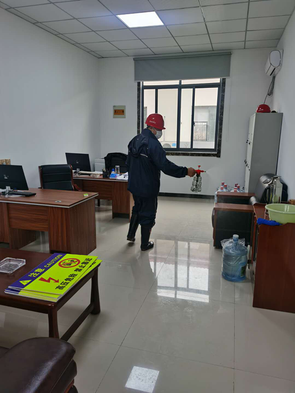 三、組織人員統(tǒng)一對(duì)辦公場(chǎng)所、樓道、廁所等區(qū)域進(jìn)行消毒處理。食堂推行分餐制,避免聚集就餐,加強(qiáng)對(duì)餐具的消毒及管理。