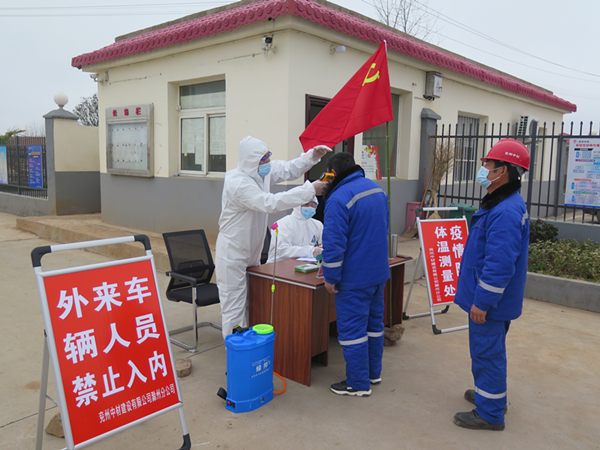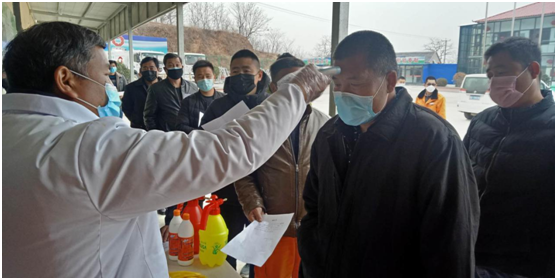 泗水分公司管理人員為職工測(cè)量體溫