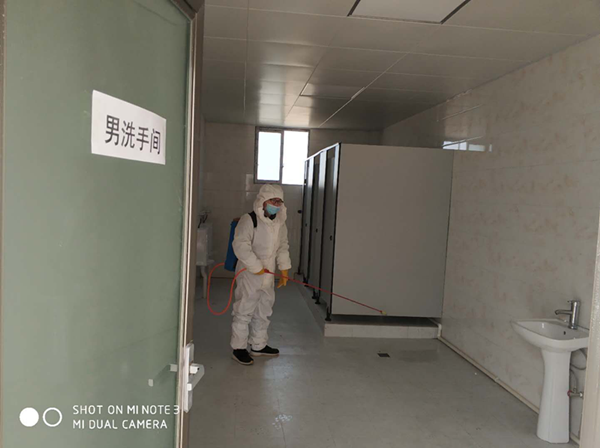 分公司組織專人每日對(duì)生活區(qū)辦公室、餐廳、衛(wèi)生間等場(chǎng)所每日消毒兩次,要求員工做好自我防護(hù),勤消毒勤洗手,共同打造抗擊疫情的良好環(huán)境。