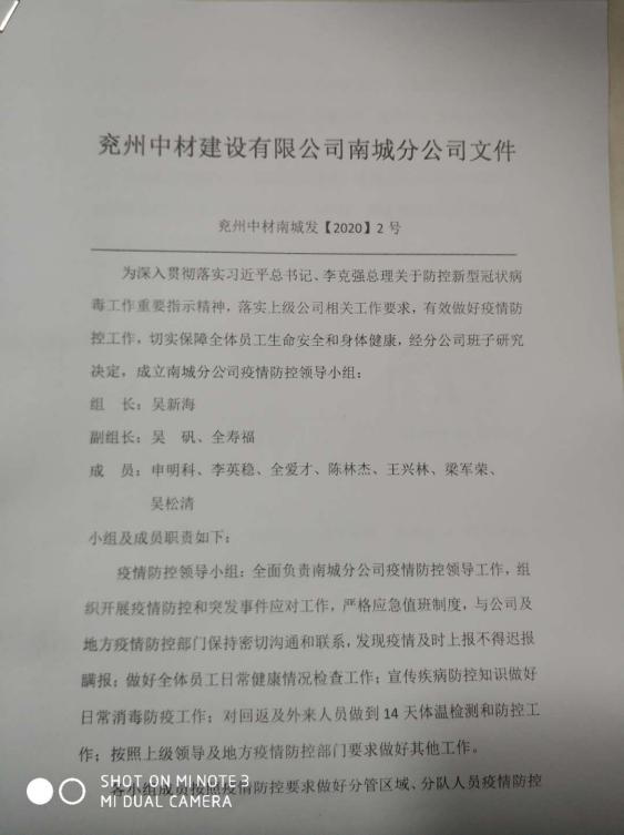 分公司以深入貫徹落實(shí)集團(tuán)公司文件精神為目標(biāo),密切配合當(dāng)?shù)卣ぷ?,成立以吳新海同志為首的疫情防控領(lǐng)導(dǎo)小組,細(xì)化人員責(zé)任,明確組織分工,從思想高度做好打贏防疫攻堅(jiān)戰(zhàn)的準(zhǔn)備。