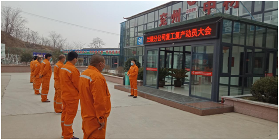 2020年221日下午一點(diǎn)半,蘭陵分公司院內(nèi),一掃往日的冷清,迎來(lái)久違的喧鬧。是日,蘭陵分公司召開(kāi)復(fù)工復(fù)產(chǎn)動(dòng)員大會(huì),為次日一早的復(fù)工復(fù)產(chǎn)吹響了的集結(jié)號(hào),也為全年的生產(chǎn)及安全工作起好局,開(kāi)好端。