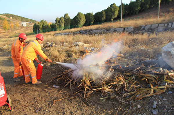 此次火災(zāi)演練的主要內(nèi)容是模擬礦區(qū)發(fā)生火災(zāi)后,員工熟悉消防器材的使用及如何撲滅初起火災(zāi)。演練現(xiàn)場(chǎng),參加演練的人員接到演練開始的通知后,迅速而有序的展開火災(zāi)救援行動(dòng),滅火過(guò)程中火勢(shì)越來(lái)越大,調(diào)集灑水車最終將火勢(shì)撲滅。