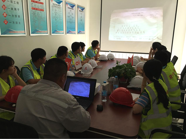 7月15日,項(xiàng)目部領(lǐng)導(dǎo)在項(xiàng)目部會議室里為同學(xué)們播放了公司宣傳片、進(jìn)行了安全教育培訓(xùn)并安排了安全知識考試。下午,同學(xué)們跟隨領(lǐng)導(dǎo)到泰山中聯(lián)水泥爵山礦進(jìn)行參觀學(xué)習(xí)。