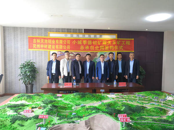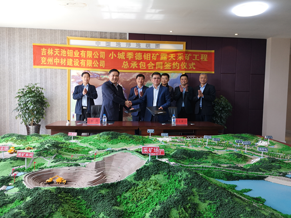 2019528858分,吉林舒蘭小城季德鉬礦露天采礦工程總承包合同簽約儀式在吉林天池鉬業(yè)有限公司舉行。參加簽約儀式的還有舒蘭市副市長明繼國、吉林天池鉬業(yè)和兗州中材相關(guān)負(fù)責(zé)人等。