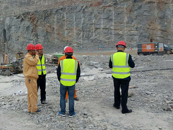 檢查團(tuán)在項(xiàng)目部經(jīng)理康斌陪同下,對(duì)現(xiàn)場(chǎng)的生產(chǎn)和安全情況進(jìn)行了視察。在視察中,領(lǐng)導(dǎo)們仔細(xì)查看了礦山生產(chǎn)的運(yùn)輸、挖裝、鉆孔等設(shè)備的安全狀態(tài),以及運(yùn)輸?shù)缆?、擋墻、平臺(tái)、邊坡防護(hù)等安全狀況,并向康經(jīng)理和安全員詳細(xì)詢問(wèn)了施工中采取的各項(xiàng)安全措施和法規(guī)制度等的落實(shí)情況。現(xiàn)場(chǎng)視察完畢后,檢查團(tuán)領(lǐng)導(dǎo)對(duì)我們的生產(chǎn)安全現(xiàn)狀進(jìn)行了評(píng)價(jià),高度肯定了我們的組織管理、安全措施和工程質(zhì)量等工作。同時(shí)也指出了現(xiàn)場(chǎng)的安全工作中的一些不足之處,要求我們要進(jìn)一步加強(qiáng)鉆孔邊緣的安全防護(hù),加強(qiáng)運(yùn)輸車輛交通管理,加強(qiáng)爆破平臺(tái)平整度等的建設(shè)工作,希望項(xiàng)目部加快處理影響工程的各種不利因素,盡早攻克礦山開(kāi)采過(guò)程中的難點(diǎn),進(jìn)一步和業(yè)主協(xié)商,積極主動(dòng)并及時(shí)地解決在礦山開(kāi)采過(guò)程中遇到的各種問(wèn)題。