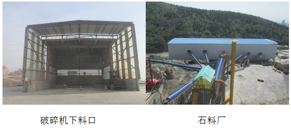 1)、對(duì)破碎、篩分系統(tǒng)及生產(chǎn)加工車間進(jìn)行封閉,并在關(guān)鍵崗位配備了除塵器,對(duì)礦石破碎機(jī)下料口安裝了增濕噴淋裝置。