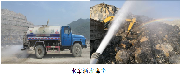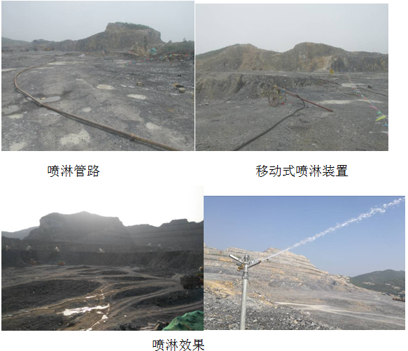 3)、對(duì)于采準(zhǔn)作業(yè)面,安裝有移動(dòng)式的噴淋裝置,對(duì)每個(gè)挖裝作業(yè)點(diǎn)都實(shí)時(shí)進(jìn)行噴淋使其爆渣保持濕潤(rùn),在裝車過(guò)程中不再揚(yáng)塵,采準(zhǔn)作業(yè)面的道路,使用水車灑水降塵。