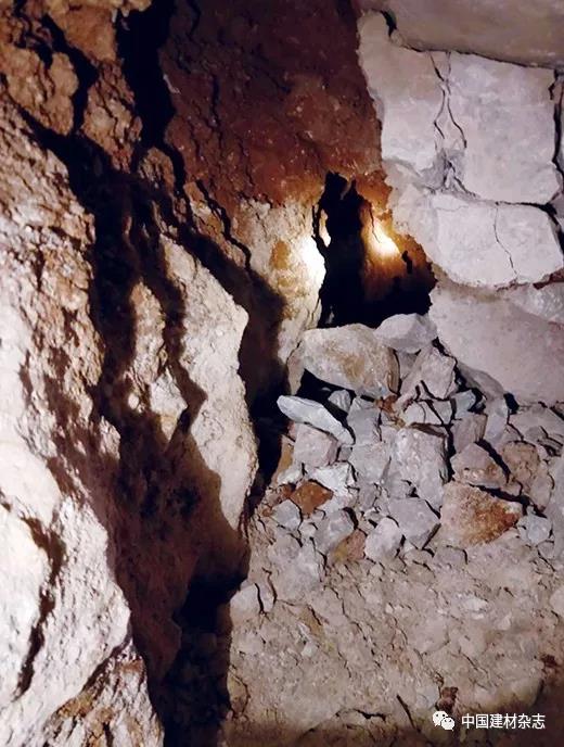 2017年11月26日,硐室開拓施工按照設(shè)計(jì)要求按部就班進(jìn)行。在硐室開拓過(guò)程中遇到了非常復(fù)雜的地質(zhì)條件,溶洞貫穿爆破區(qū)域。為了更好地了解溶洞貫穿情況,為硐室爆破設(shè)計(jì)的修改提供更確切的數(shù)據(jù),孔總與金總不辭辛苦,親自爬進(jìn)1.0m×1.0m的硐子中探查實(shí)際情況,這種求真務(wù)實(shí)的精神令人欽佩。