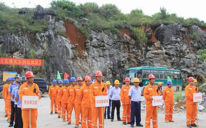 兗州中材建設(shè)有限公司瑞金項(xiàng)目部緊緊圍繞2017年安全月主題“全面落實(shí)企業(yè)安全生產(chǎn)主體責(zé)任”,為進(jìn)一步增強(qiáng)項(xiàng)目部全體干部職工應(yīng)對(duì)突發(fā)事故的綜合處置及應(yīng)急救援能力,鍛煉和提高應(yīng)急救援組織搶險(xiǎn)救災(zāi)過程中與各單位協(xié)調(diào)、配合救援的實(shí)戰(zhàn)能力,保障員工生命財(cái)產(chǎn)安全, 628日,兗州中材建設(shè)有限公司瑞金項(xiàng)目部在瑞金萬年青公司“貓子寨”石灰石礦山北區(qū)+255米平臺(tái)開展礦山爆破事故應(yīng)急救援演練。