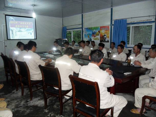 2012年安全生產(chǎn)月到來之際。江油分公司國大項目部實時舉行了以“科學(xué)發(fā)展、安全發(fā)展”為主題的 “安全生產(chǎn)月”活動動員大會。江油分公司國大項目部及大三元分隊全體員工參加會議。