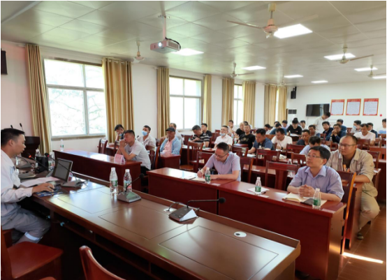現(xiàn)場(chǎng)觀摩結(jié)束后,全體人員來(lái)到愛(ài)民鄉(xiāng)政府,分公司副經(jīng)理肖波、夏曉陽(yáng)就礦山爆破安全、邊坡控制爆破技術(shù)及現(xiàn)場(chǎng)安全施工管理等方面對(duì)全體參會(huì)人員進(jìn)行培訓(xùn)。