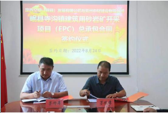 8月24日上午,定西交投(岷縣)發(fā)展有限公司與兗州中材建設(shè)有限公司簽署岷縣寺溝鎮(zhèn)建筑用砂巖礦開采項目(EPC)總承包合作協(xié)議,在岷縣投資建設(shè)綠色、環(huán)保礦石開采加工生產(chǎn)線。
