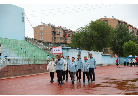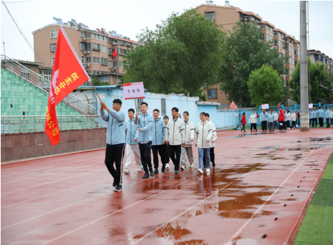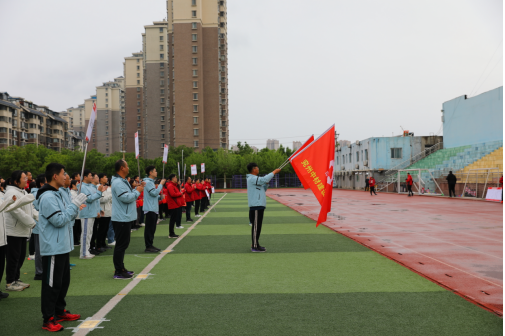 踏著激昂的運動員進行曲節(jié)拍,運動員們精神抖擻、斗志昂揚,排列著整齊的方陣,在旗手的引領(lǐng)下,喊著響亮的口號,依次有序地走過主席臺。