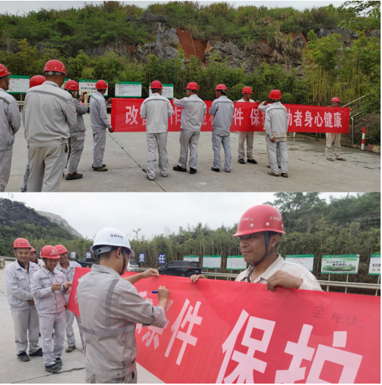 為使宣傳活動(dòng)更深入人心,在礦山道路兩旁懸掛宣傳橫幅,時(shí)刻提醒各崗位職工的健康防護(hù)意識(shí)。