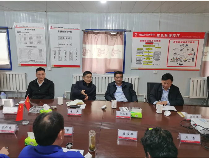 朱兵一行參觀了礦山施工現(xiàn)場(chǎng),并與業(yè)主單位吉林天池鉬業(yè)領(lǐng)導(dǎo)親切交流。業(yè)主方對(duì)舒蘭分公司施工組織、裝備配置、人力配備表示高度認(rèn)可。