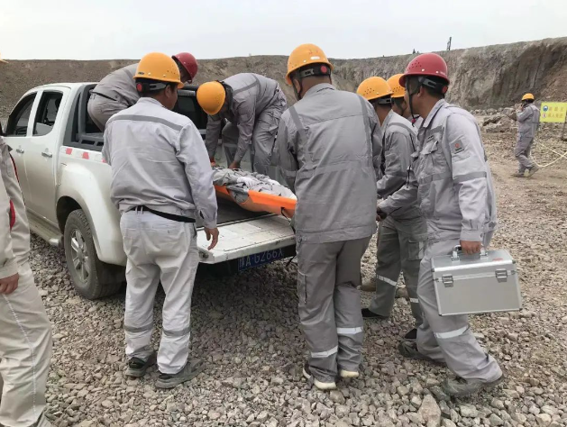 上午10時(shí)整,演練正式拉開(kāi)序幕。假設(shè)情況是該露天礦山某區(qū)域發(fā)生了邊坡坍塌,造成一名作業(yè)人員腿部受傷被困。接到報(bào)告后,項(xiàng)目副經(jīng)理?xiàng)钣盍⒓磫?dòng)應(yīng)急預(yù)案,迅速組織了由醫(yī)療救護(hù)組、應(yīng)急搶險(xiǎn)組、警戒保衛(wèi)組、物資保障組等部門(mén)人員組成的應(yīng)急救援隊(duì)伍,攜帶救援裝備,迅速趕赴事故現(xiàn)場(chǎng)。同時(shí),通訊保障組也迅速建立起臨時(shí)通訊網(wǎng)絡(luò),確?,F(xiàn)場(chǎng)信息暢通無(wú)阻。