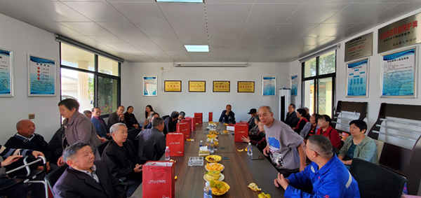 公司工會(huì)主席劉衍勝、萬(wàn)年分公司經(jīng)理鄭發(fā)軍和江西郴州黨支部書(shū)記姜嵩(玉山項(xiàng)目部經(jīng)理)帶領(lǐng)支部多名黨員及兩個(gè)項(xiàng)目的全體員工熱情接待了“回家”的退休職工及其家屬共26人,他們大多已年逾古稀,兩鬢斑白,有的甚至步履蹣跚,但重回曾經(jīng)工作過(guò)的環(huán)境,勾起無(wú)數(shù)回憶,重新實(shí)現(xiàn)相聚,大家笑容滿面、幸福滿滿。