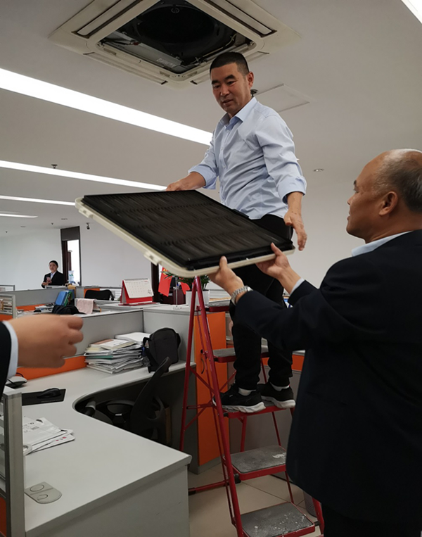 為扎實(shí)開展“不忘初心 牢記使命”主題教育,充分發(fā)揮黨先鋒模范作用,11月11日,濟(jì)南支部開展 “不忘初心 牢記使命”主題教育黨員志愿服務(wù)活動(dòng)。支部書記高金軒同志帶領(lǐng)黨員全面清洗辦公區(qū)空調(diào)過(guò)濾網(wǎng)。經(jīng)過(guò)一個(gè)夏天的使用,空調(diào)進(jìn)風(fēng)口格柵和過(guò)濾網(wǎng)已經(jīng)布滿灰塵,同志們不怕臟不怕累,挨個(gè)拆卸、清洗、擦拭、晾曬,將每個(gè)過(guò)濾網(wǎng)清洗的潔凈如新。
