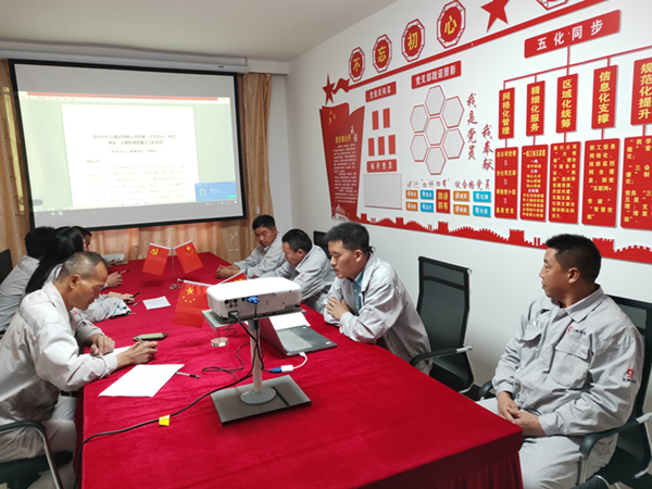 保德項(xiàng)目部于9月28日開(kāi)展“不忘初心、牢記使命”主題教育活動(dòng),會(huì)上,項(xiàng)目部副經(jīng)理劉海瑞帶領(lǐng)員工學(xué)習(xí)黨委劉書(shū)記《在中材礦山建設(shè)有限公司開(kāi)展“不忘初心,牢記使命”主題教育部署會(huì)上的講話》。