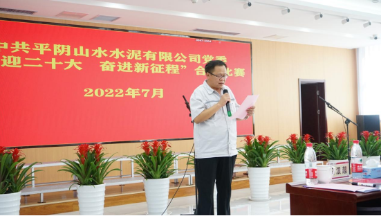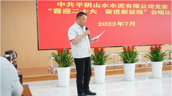 15:50分活動正式開始,平陰山水黨委書記侯福存發(fā)表主旨講話:今年是建黨101周年。100多年來,我黨團(tuán)結(jié)帶領(lǐng)全國各族人民自強(qiáng)不息、拼搏進(jìn)取,戰(zhàn)勝艱難險(xiǎn)阻,取得了舉世矚目的輝煌成就,帶領(lǐng)我們昂首闊步邁向偉大復(fù)興。今天,我們隆重集會,用歌聲頌揚(yáng)黨的光輝歷史,緬懷黨的豐功偉績,向黨的101歲華誕獻(xiàn)禮,向黨的二十大獻(xiàn)禮。公司黨委舉辦本次合唱大賽,既是豐富黨建工作形式、促進(jìn)黨建和公司中心工作高度融合的重要舉措,也希望通過比賽,進(jìn)一步增強(qiáng)黨群、干群凝聚力和向心力,激勵全體干部職工堅(jiān)定信念、迎難而上,在“百日趕超”勞動競賽中繼續(xù)立足崗位、攻堅(jiān)克難,全力沖刺“大趕超”任務(wù)目標(biāo),為公司項(xiàng)目建設(shè)和高質(zhì)量發(fā)展貢獻(xiàn)更大力量。
