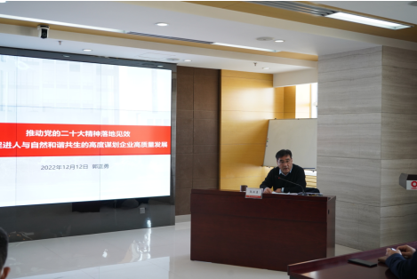 郭正勇從三方面進(jìn)行了深入闡述和精彩宣講。一是深刻理解二十大報告中關(guān)于推動綠色發(fā)展,促進(jìn)人與自然和諧共生的深刻內(nèi)涵;二是全面把握人與自然和諧共生新任務(wù),聚力踐行央企綠色發(fā)展使命擔(dān)當(dāng);三是聚焦近期工作,強(qiáng)化擔(dān)當(dāng)落實。
