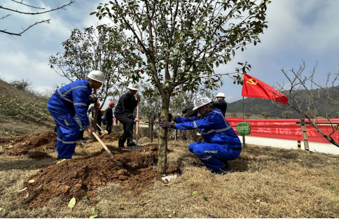 學(xué)習(xí)結(jié)束,參會人員到礦山現(xiàn)場開展“黨旗紅、添新綠”主題黨日植樹活動,以實(shí)際行動踐行綠色發(fā)展理念。