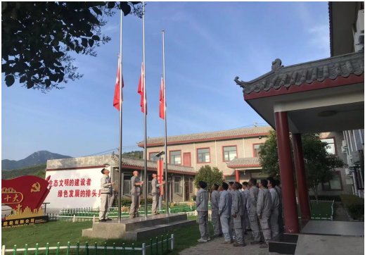 伴隨著雄壯的《義勇軍進(jìn)行曲》,五星紅旗冉冉升起,隨風(fēng)飄揚,全體員工齊唱國歌,向國旗行注目禮,目光凝視著迎風(fēng)飄揚的五星紅旗,心中寄托著對黨無限的熱愛、崇高的敬意以及深情的祝福。