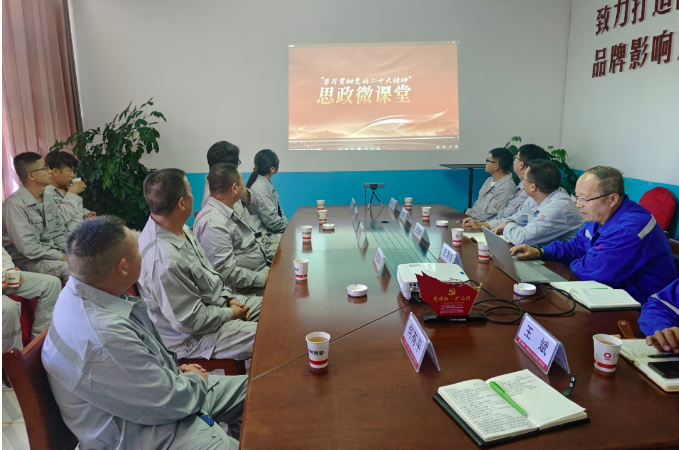 現(xiàn)場觀摩結(jié)束之后,全體人員集中觀看學(xué)習(xí)思政微課堂《學(xué)習(xí)貫徹黨的二十大精神》。中材西安岢嵐分公司經(jīng)理王渭鋒對分公司的生產(chǎn)情況做了簡要介紹,參會人員就圍繞安全生產(chǎn)、控制爆破、形象建設(shè)、生態(tài)恢復(fù)、危廢處理、安全費用的提取和使用方面進行了廣泛細致的交流。