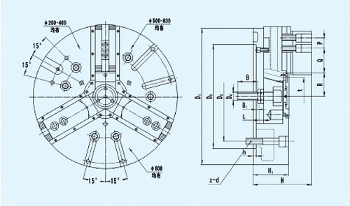 ☆是立式車床配套的專用卡盤,也可用于其它機(jī)床。