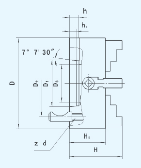 ※根據(jù)用戶需求,還可提供配帶分離爪(滑座和頂爪連接尺寸符合ISO3442)的四爪單動(dòng)卡盤,型號(hào)為K72口A/口、K72口D/口、 K72口E/口。