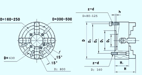 根據(jù)用戶需求,還可提供配帶分離爪(滑座和頂爪連接尺寸符合ISO3442)的四爪單動(dòng)卡盤(pán),型號(hào)為K72A、K72D、K72E。