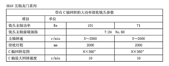 XKAV五軸龍門系列是我公司在XKA21、XKA24、XKA27、XKA28系列數(shù)控龍門鏜銑床基礎(chǔ)上配置帶C軸回轉(zhuǎn)的大功率滑枕銑頭和擺角銑頭,實現(xiàn)五軸五聯(lián)動加工功能。