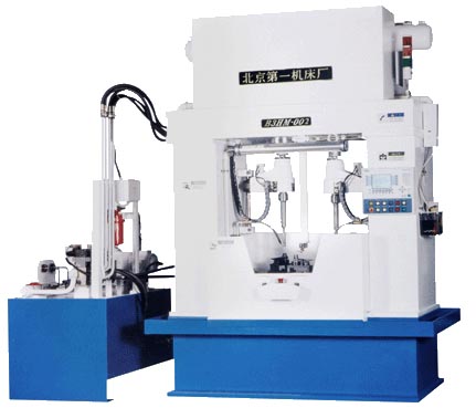 B3HM-002 兩軸三工位數(shù)控內(nèi)圓珩磨機 本機床為兩軸三工位,有粗珩、精珩及裝卸工位。機床采用龍門框架式結構,剛性好,精度保持性好。工作臺采用液壓精密鼠牙盤式回轉(zhuǎn)工作臺,分度精度高。主旋、往復無極調(diào)速。往復采用曲柄連桿機構;進給系統(tǒng)采用伺服電機驅(qū)動實現(xiàn)高精度定量進給,最小補償量可達0.001mm,進給準確可靠,可實現(xiàn)自動補償。機床配備帶有恒溫裝置的磁性過濾系統(tǒng),保證冷卻液清潔度及溫度。電氣系統(tǒng)采用西門子S7-300 PLC數(shù)控系統(tǒng),彩色顯示屏,編程方便,易于操作。 適合加工Φ40X100范圍內(nèi)小短孔,如壓縮機缸體、液壓閥體、殼體、泵體等。此機床含有粗珩、精珩兩軸,工件可一次裝卡完成粗、精加工,保證加工精度。特別適合于液壓閥、增壓器中間殼體等間斷孔的加工。加工節(jié)拍25秒,效率高。 可根據(jù)用戶要求,配備珩磨刀具及卡具,并負責“交鑰匙”工程,為用戶提供加工工藝參數(shù)及操作方法培訓。 加工精度:圓度:0.0015mm, 圓柱度0.003mm, 粗糙度: Ra0.2μm。